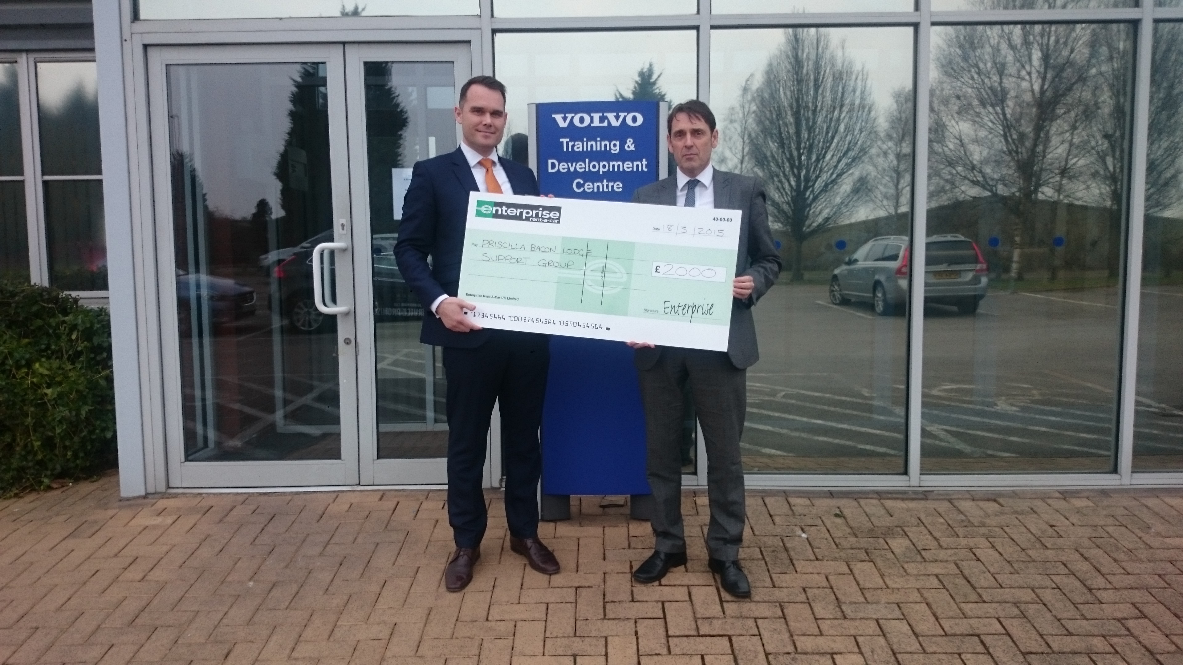 Enterprise Rent-A-Car has presented a cheque on behalf of its philanthropic arm, the Enterprise Holdings Foundation, to Steve Plunkett of Volvo.