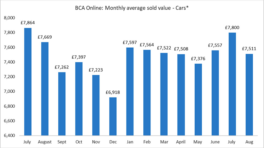Values averaged £7,511 at BCA in August, on a par with the average of £7,520 recorded across the calendar year to date with sold volumes and sale conversions rising, driven by active buyer numbers registering a new highpoint in August.