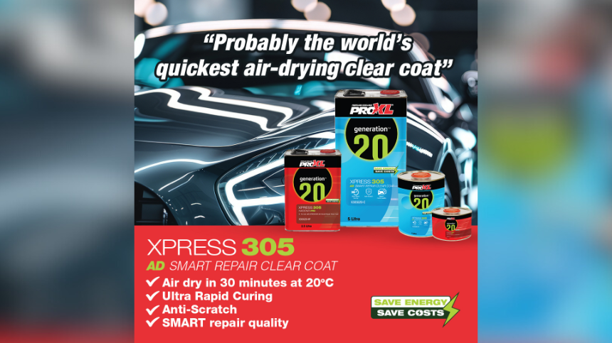 ProXL has launched XPRESS305 which ProXL claims, “is perhaps, the world’s quickest air-drying clear coat”, making it ideal for busy mobile SMART and bodyshop-based repair professionals. The fast-drying clear coat is ideal for repair professionals who no longer require a heated booth or infrared lighting.