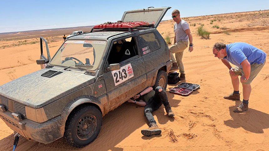 Andy Johnson of Fix Auto Lichfield and Sam Randon are in the middle their second run at the six-day Panda Raid Rally, which started on 12 April, and once again they’re doing it for a very good cause – to raise funds for the amazing DEBRA UK charity.