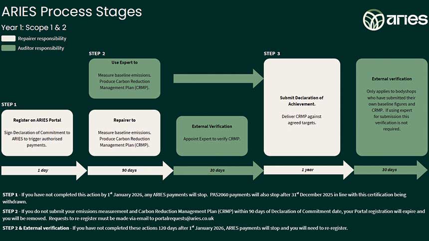 The ARIES Framework Guidance is that any repairers who have not committed to ARIES should register via the portal and upload their Declaration of Commitment by 1 January.