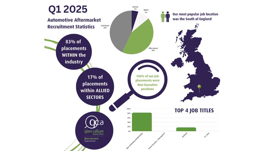 According to the first quarterly recruitment of the year published by GCA, a specialist recruitment agency in the automotive aftermarket, 43% of placements were office-based.
