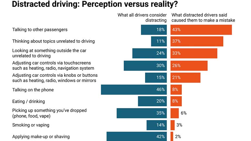Interestingly, the results of the survey are largely at odds with what drivers believe to be biggest distractions.