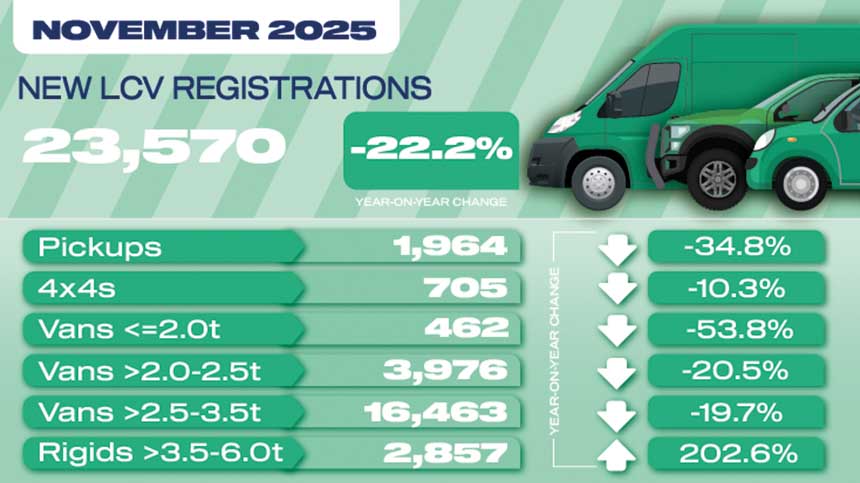 LCV sales fell by nearly a quarter in November to 23,570 units, according to new figures from the Society of Motor Manufacturers and Traders.