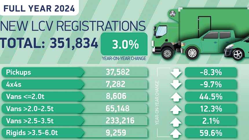 LCV sales rose in 2024 by three per cent, according to new figures published by the Society of Motor Manufacturers and Traders.