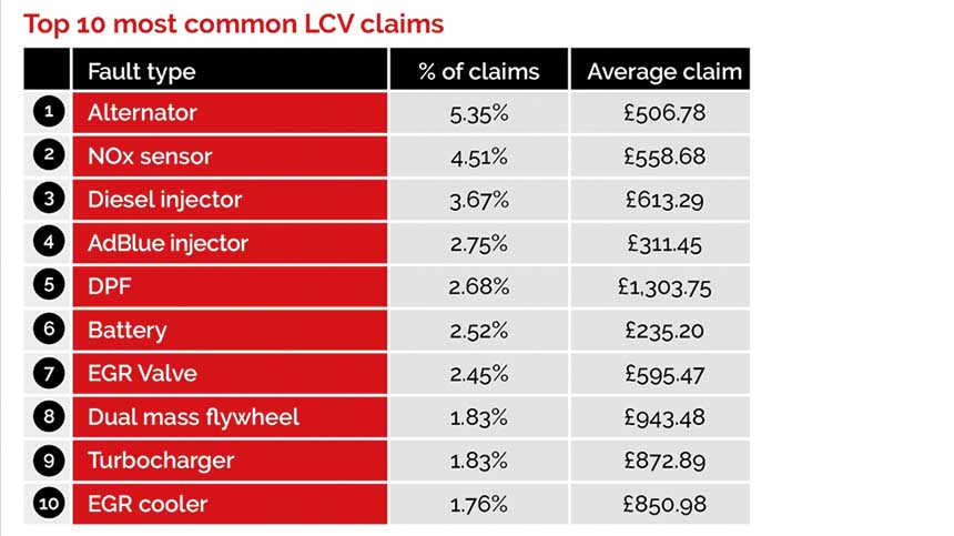 “These findings underline the importance of robust maintenance routines and comprehensive warranty coverage for LCV fleet operators.”