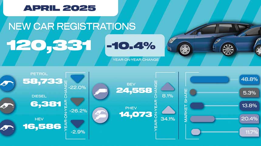Meanwhile, demand for hybrid electric vehicles fell 2.9%, with petrol and diesel registrations down 22% and 26.2% respectively, but sales of plug-in hybrids was up 34.1% and electric vehicle sales rose 8.1% to 24,558 units, accounting for 20.4% of the market.