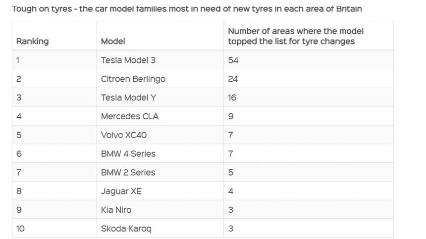 But when looking at the more than two million customers having tyres changed at Kwik Fit centres every year, it found the Tesla Model 3 topped the list in significantly more locations than any other vehicle.