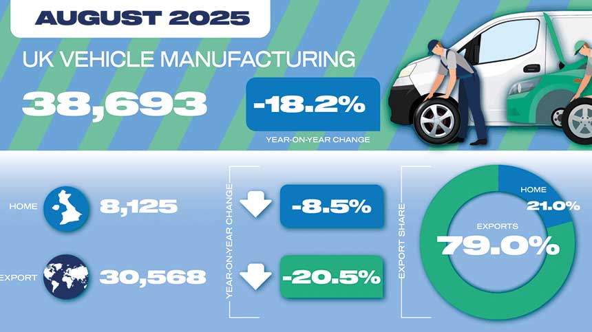 SMMT figures have also revealed that commercial vehicle production plunged by 73.2% last month to just 1,621 units to continue a long downward trend. CV output year-to-date is down 54.4% to 35,922 units.