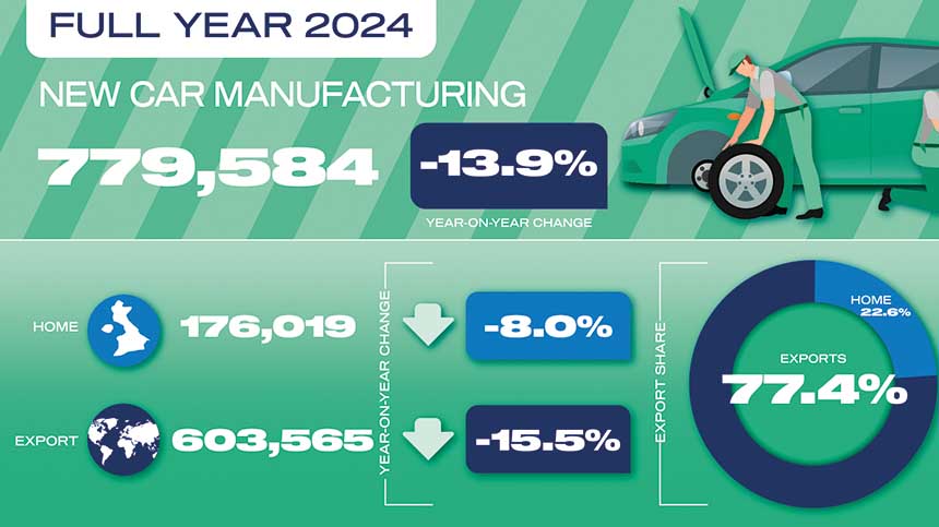 UK vehicle production fell by 11.8% last year with a total of 905,233 units produced, according to the Society of Motor Manufacturers and Traders (SMMT).