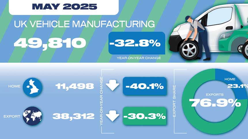 Car production slumped by 31.5% in the month to 47,723 units, while commercial vehicle production was down by 53.6% to just 2,087 units. Combined, production fell by 32.8%, making it the lowest May output since 1949, excluding Covid-hit 2020.