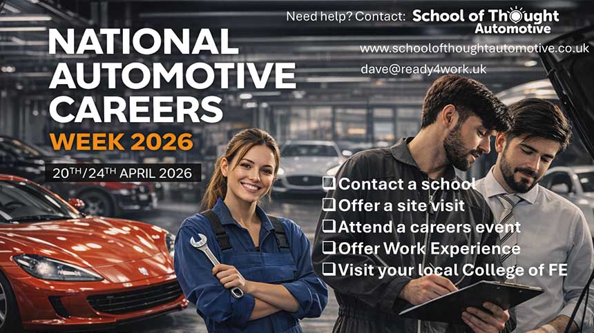 Created by School of Thought founders Dave Reece and Julie Eley, National Automotive Careers Week will support school and college career events and encourage vehicle manufacturers, dealers, suppliers, garages, bodyshops, support and engineering companies to get involved.