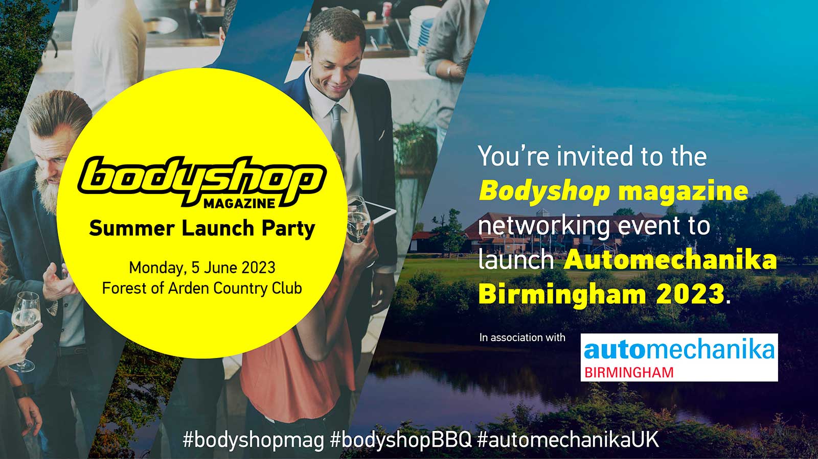 Book your places now for the Bodyshop Magazine Summer Launch Party 2023, an exclusive networking event for the UK collision repair industry which will take place on Monday, 5 June (6:00pm-midnight) at the Delta Hotels by Marriott Forest of Arden Country Club near Birmingham.